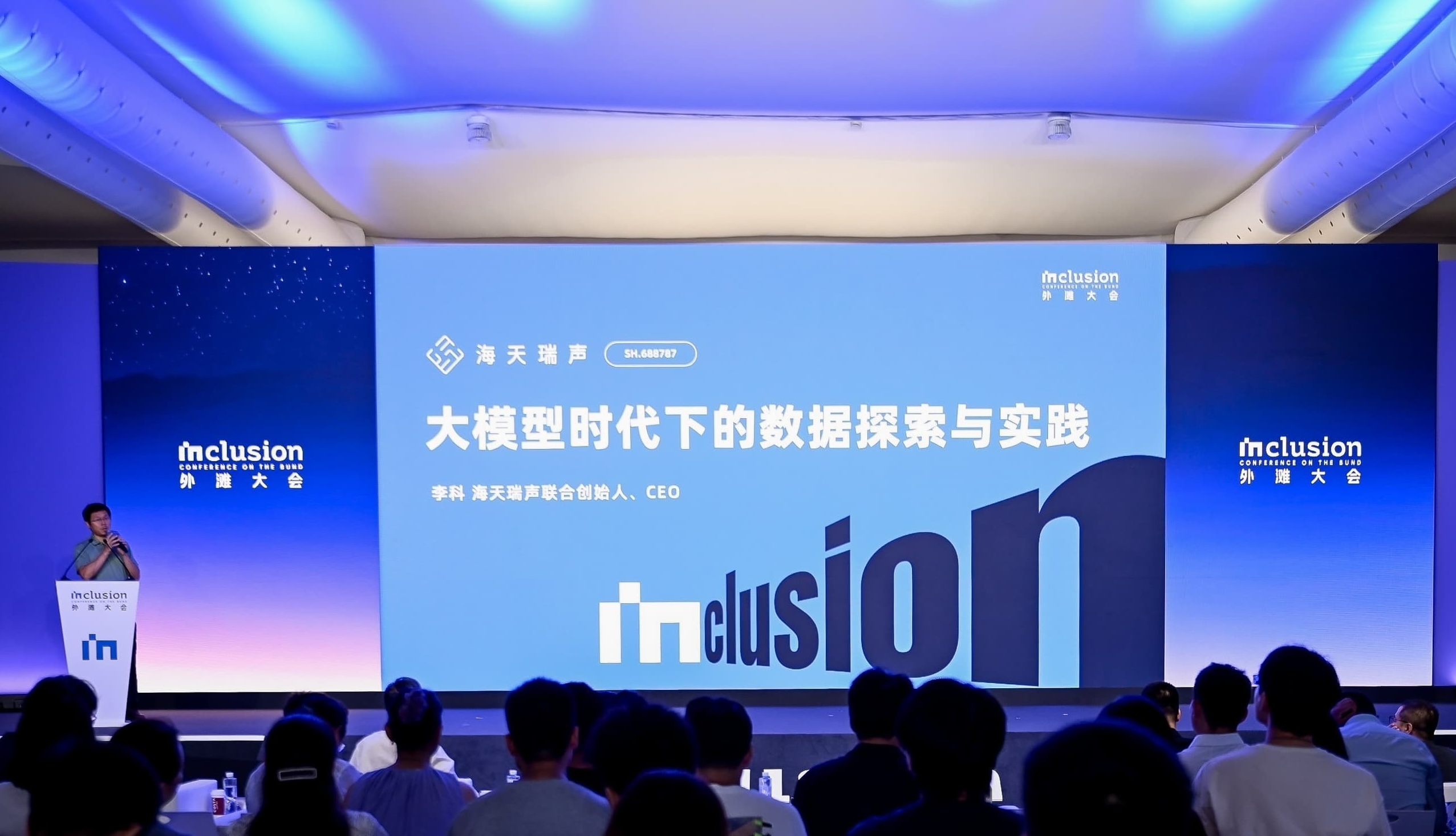 9月12日,海天瑞声联合创始人、CEO李科受邀出席 2025 Inclusion·外滩大会 “Data meets AI:智能时代的双引擎” 论坛,并发表《大模型时代下的数据探索与实践》主题演讲,聚焦大模型时代下的数据新范式及海天瑞声在人工智能数据领域的实践探索与落地应用。