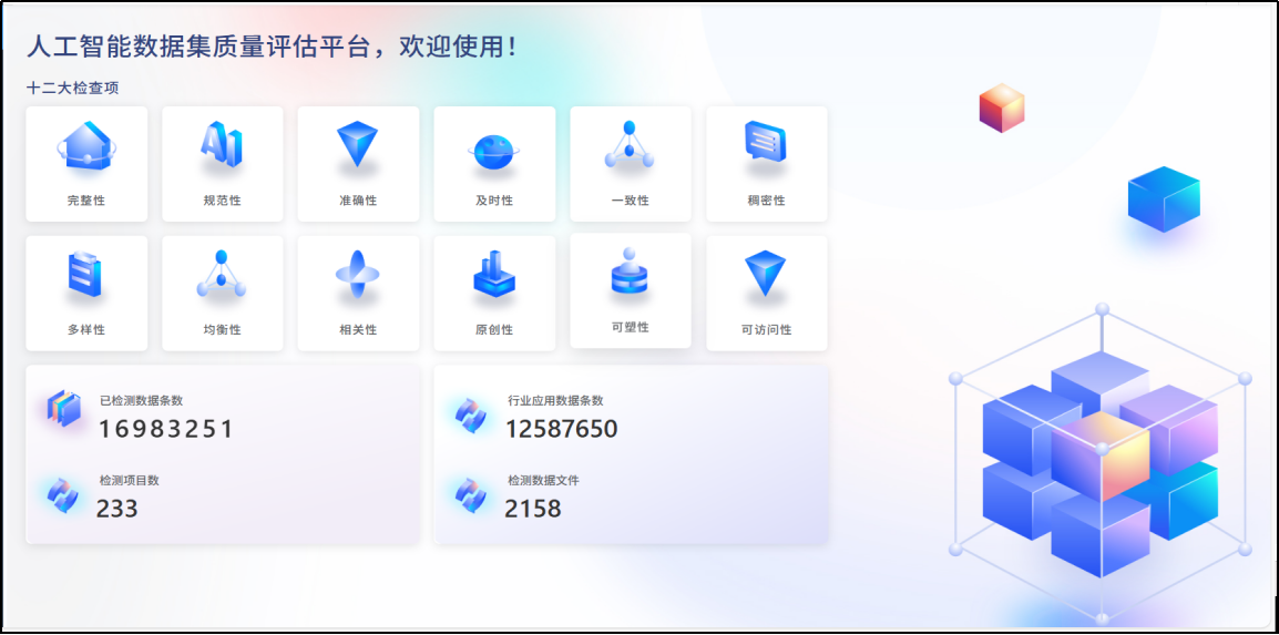 2024年12月,中国信通院人工智能研究所正式发布 “可信AI”人工智能数据集质量评估体系(ADAQ,Artificial intelligence DAtasets—Quality evaluation),开发建设人工智能数据集质量评估工具平台1.0,搭建“1个标准化方法+1个质量评估平台+1套标准化服务流程+N项定制化质量评估方案”的质量评估能力,面向通用基础数据集、行业通识类数据集和行业专用类数据集等三大类数据集提供标准化数据集质量评估测试服务。